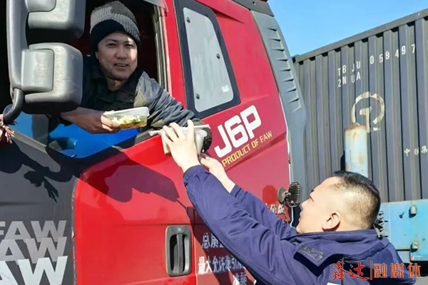 在供餐現(xiàn)場,當(dāng)一路風(fēng)塵仆仆的司機(jī)師傅們接過這份免費(fèi)的熱乎便餐時(shí),臉上洋溢著感動(dòng)與滿足。其中一位貨車司機(jī)感慨道:“跑了這么久的車,可以說風(fēng)餐露宿,吃上如此暖心的飯菜,讓我們這些在外的人心里特別暖和,謝謝鑫達(dá)!”一份份飽含美味與溫暖的便餐在大家手中傳遞,一聲聲關(guān)切的叮嚀在耳邊流轉(zhuǎn),溫暖與關(guān)愛也如同一股暖流,在寒風(fēng)里悄然流淌,讓司機(jī)們?cè)诤涞亩绽锔惺艿搅思乙话愕臏嘏?/p>
