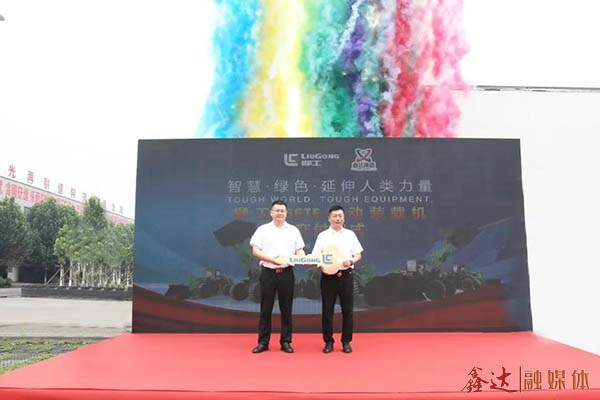 ▲柳工集團(tuán)向遷安鑫達(dá)物流有限公司遞交鑰匙,標(biāo)志著61臺電動裝載機(jī)全部入列運(yùn)營
