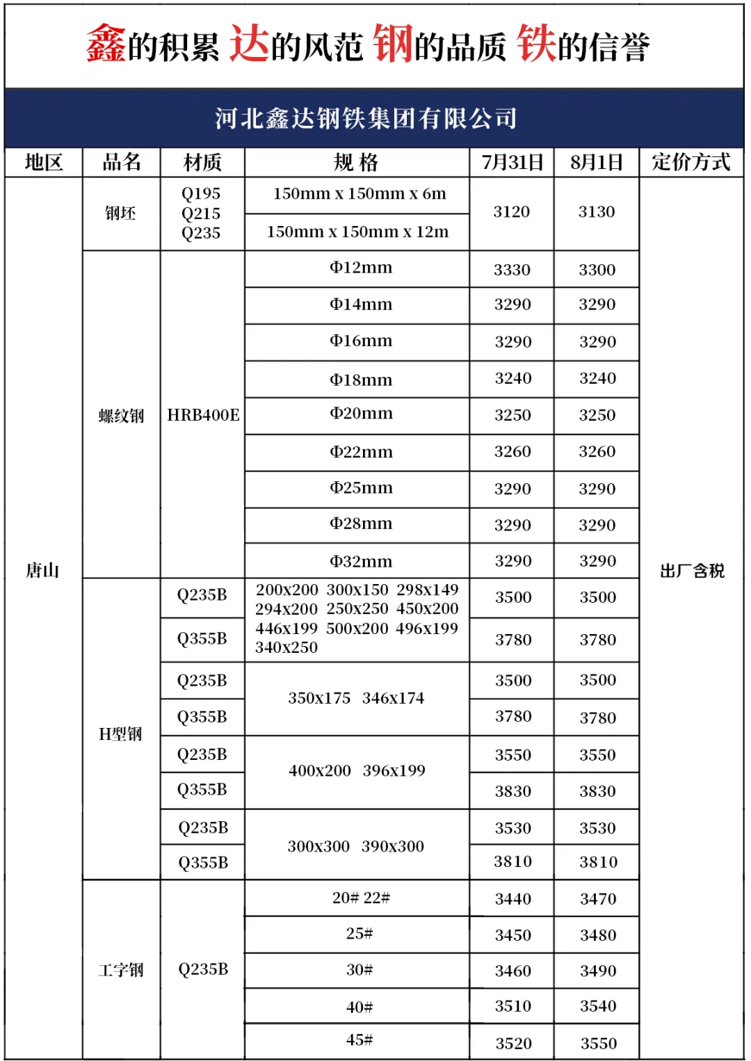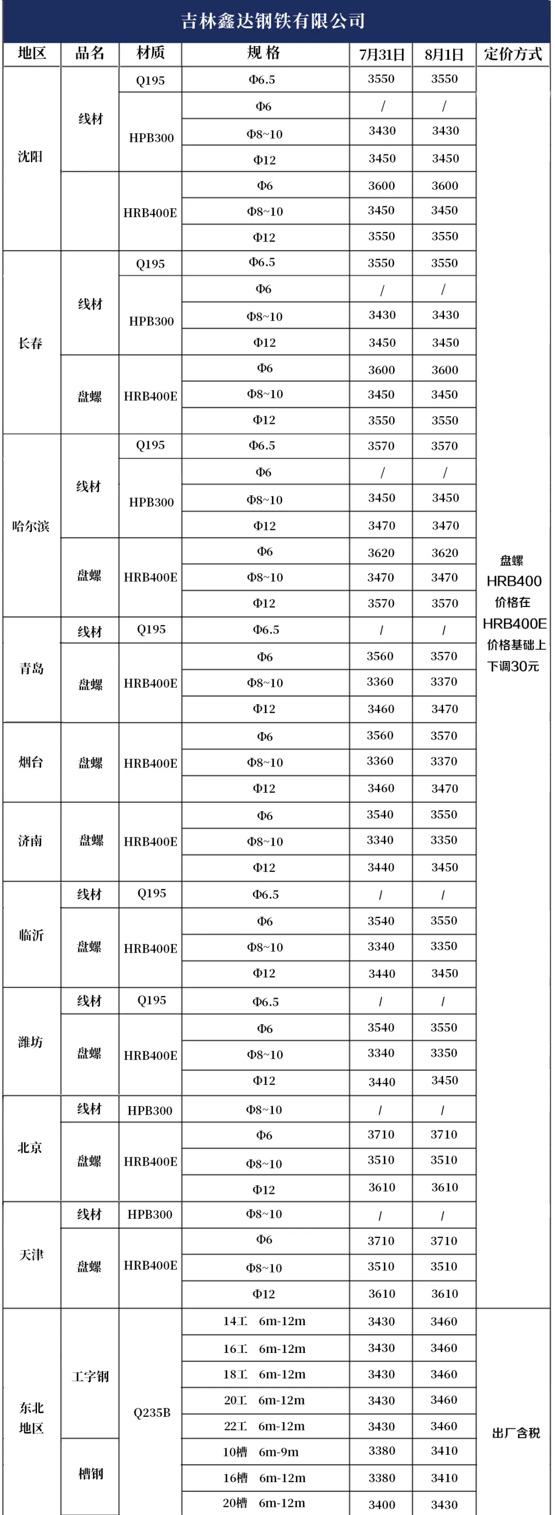 8月1日產(chǎn)品報(bào)價(jià)